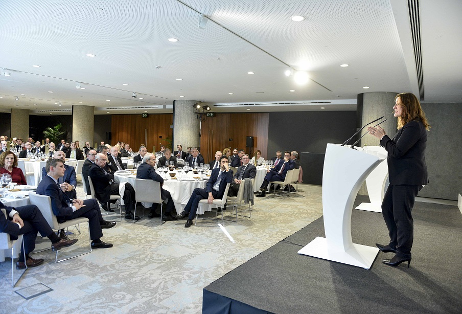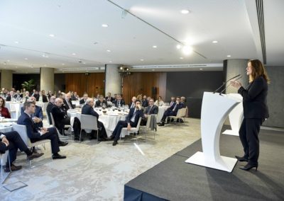 La presidenta del Port de Barcelona també es va afegir a la petició de la Cambra de Comerç sobre la coordinació entre les administracions públiques per tirar endavant infraestructures estratègiques. A més dels accessos viaris i ferroviaris, va sol•licitar la prolongació de la línia ferroviària d’Adif fins als 750 metres lineals per poder operar amb trens de més capacitat i també el Corredor Mediterrani. “El dèficit en infraestructures està quantificat i cap retard més es justificable”. La consolidació del Port de Barcelona com a hub logístic únic a Europa i la Mediterrània, juntament amb l’Aeroport de Barcelona i el Consorci de la Zona Franca, és un altre dels objectius que es marca la institució.